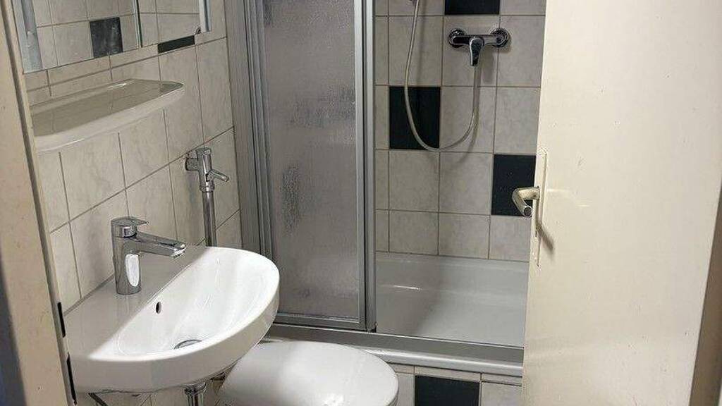 Offenes 1-Zimmer-Apartment mit kleiner Küchenzeile (Spüle, 2 Herdplatten) und gepflegtem Laminatboden. Durch eingebaute Glasfliesen gelangt sehr viel Licht in die Wohnung. Das Badezimmer ist ausgestattet mit Dusche, Waschbecken und WC. Die separate Abstellkammer bietet Ihnen viel Stauraum für beispielsweise Bekleidung, Schuhe, Vorräte, etc.