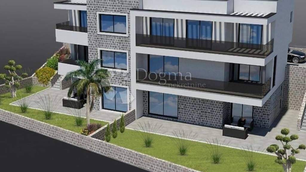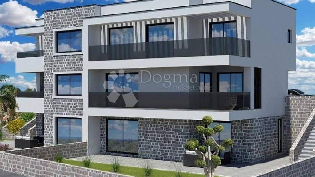 Eine moderne Doppelhaushälfte zum Verkauf in Vodice, in ruhiger Lage, nur 500 Meter vom Strand und 900 Meter vom Stadtzentrum entfernt. Dieses neue, hochwertig gebaute Gebäude besteht aus drei Etagen Keller, Erdgeschoss und erster Stock mit wunderschönem Blick auf das Meer.