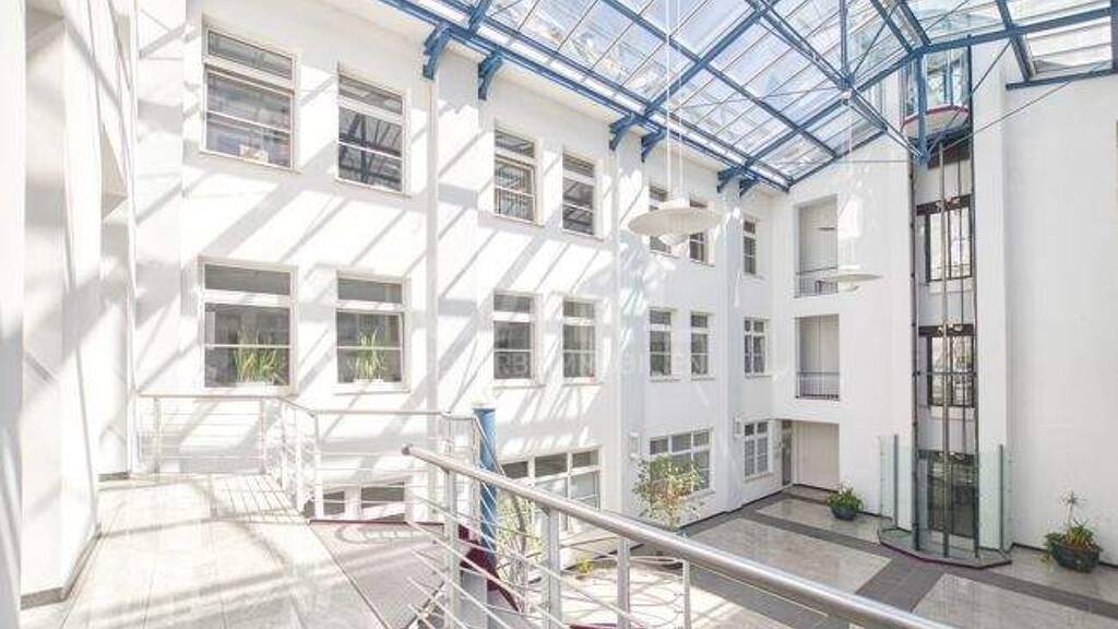 Die Gesamtfläche von insgesamt ca. 250 m² befindet sich im 1. Obergeschoss des Gebäudes und kann barrierefrei erreicht werden, ein Personenaufzug ist selbstverständlich vorhanden. Die Einheit ist über zwei Zugänge zu erreichen. Der Hauptzugang kann über die Wendeltreppe im beeindruckenden Lichthof des Gebäudes über den repräsentative Galerieeingang der Flächen erfolgen. Ein weiterer Zugang in die Einheit erschließt sich vom rückwärtigen Treppenhaus aus.