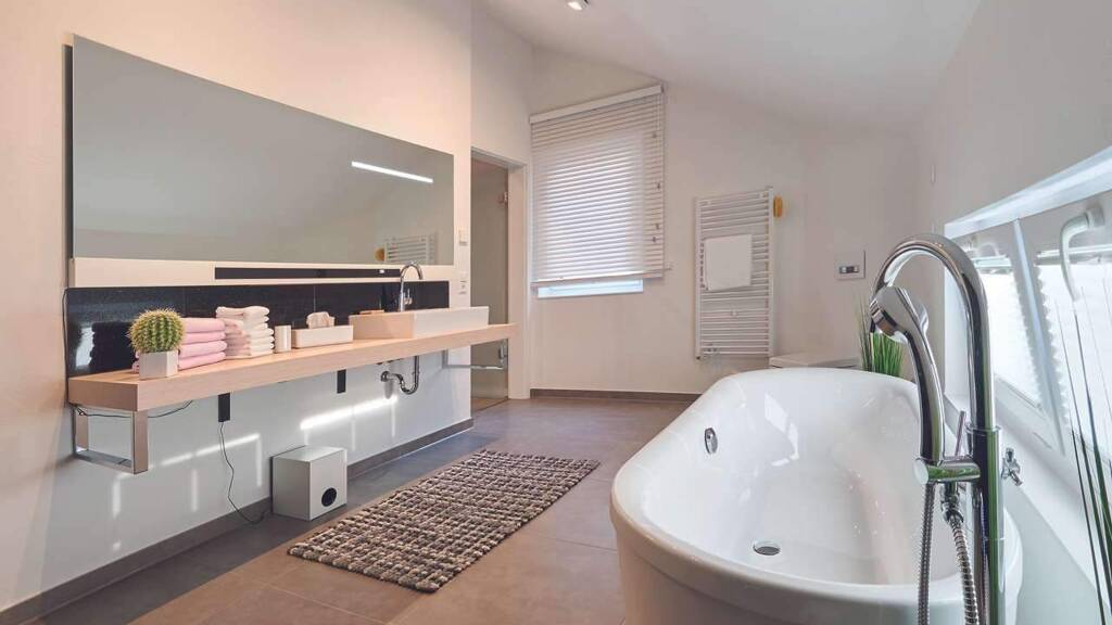 - Komplette Architektenleistung und Bauantrag inklusive - Bodengutachten und Versicherungsleistung durch R+V inklusive - KfW Effizienzhaus 40 im Grundpreis enthalten - kontrollierte Be-& Entlüftung mit Wärmerückgewinnung - Luft-Wasser-Wärmepumpe inklusive Fußbodenheizung - Hochwertige Holztreppe in verschiedenen Ausführungen - Umfassendes Versicherungspaket während der Bauphase - 3-fach verglaste Passivfenster, optional folierte Rahmen - gedämmte Alu-Rollläden mit Komfortausstattung - auf Wunsch elektrische Antriebe gegen geringen Aufpreis - inklusive Blower-Door-Test
