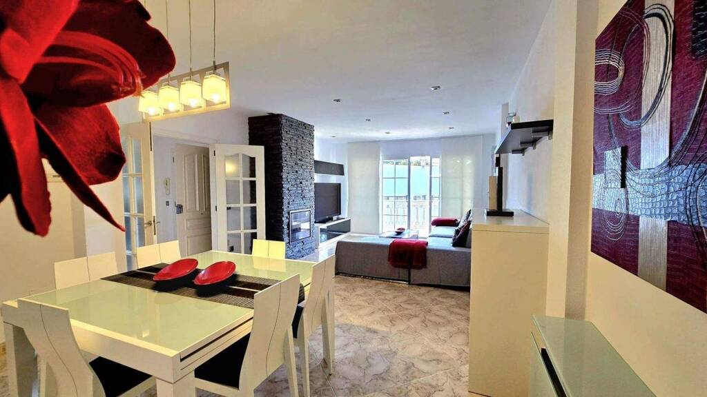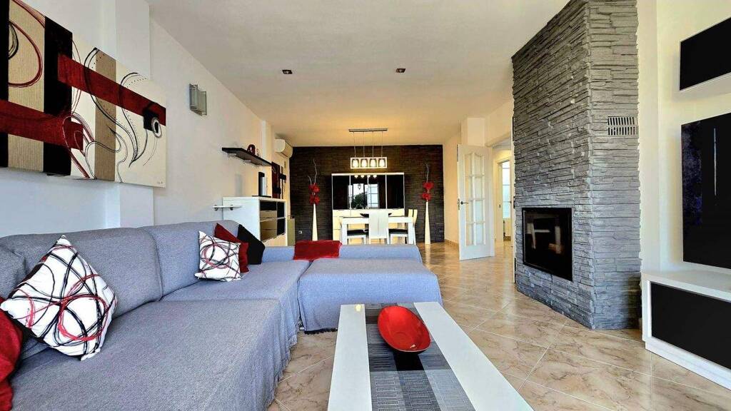 Aufgeteilt in geräumiges Wohnzimmer, drei Schlafzimmer – das Hauptschlafzimmer mit eigenem Bad und Ankleidezimmer –, zwei Badezimmer, komplett eingerichtete KĂĽche und Balkon mit Fernsicht. .