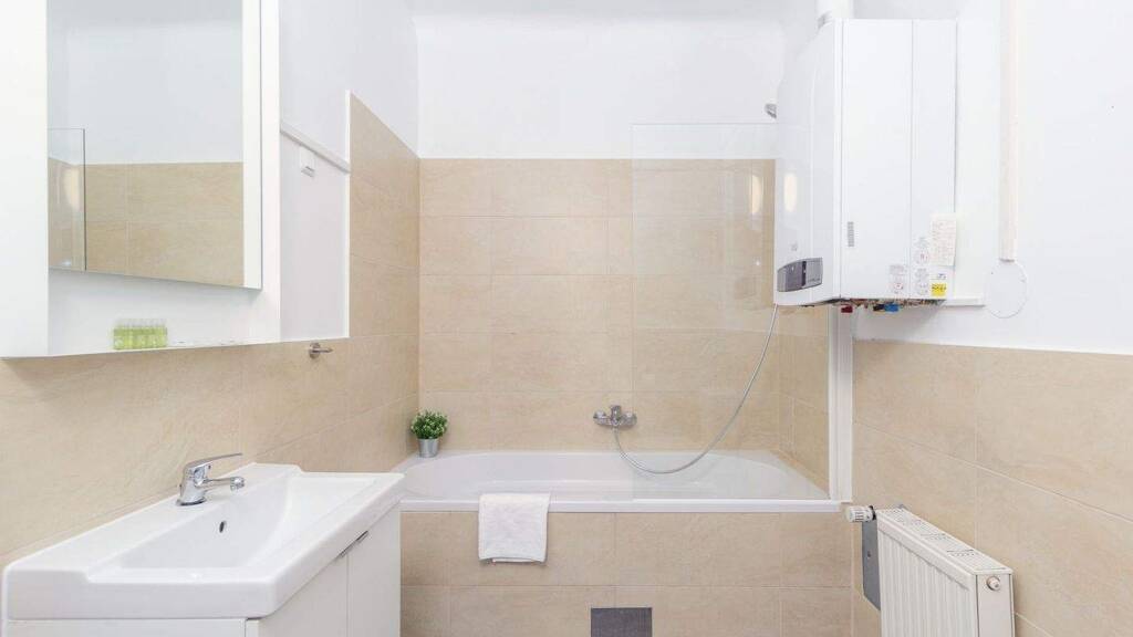 Die separate Küche ist großzügig dimensioniert und bietet ausreichend Platz für eine vollwertige Küchenlösung. Das Badezimmer ist funktional ausgestattet, ein separater Vorraum sorgt für eine klare und effiziente Erschließung der einzelnen Räume.