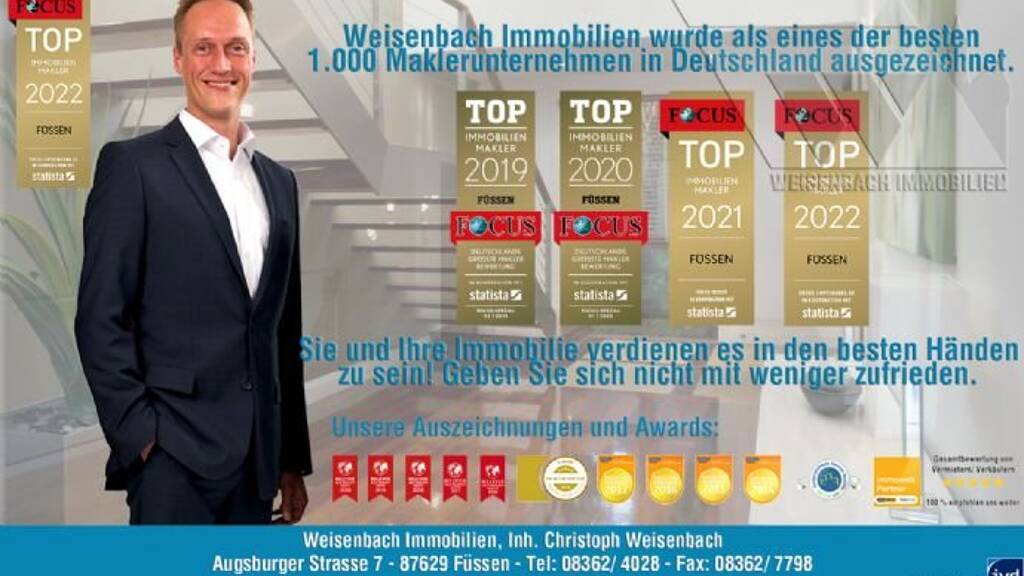 Die lebendige und wirtschaftlich breit aufgestellte Stadt Füssen bietet Ihnen und den Mietern Ihres Mehrfamilienhauses neben einem guten Arbeitsmarkt, einer hervorragenden Infrastruktur, verschiedenen Badeseen und einem nahezu unendlichen Freizeitangebot weiterhin zahlreiche Einkaufsmöglichkeiten, mehrere Kindergärten, eine Grund-, Mittel- und Realschule sowie ein Gymnasium.