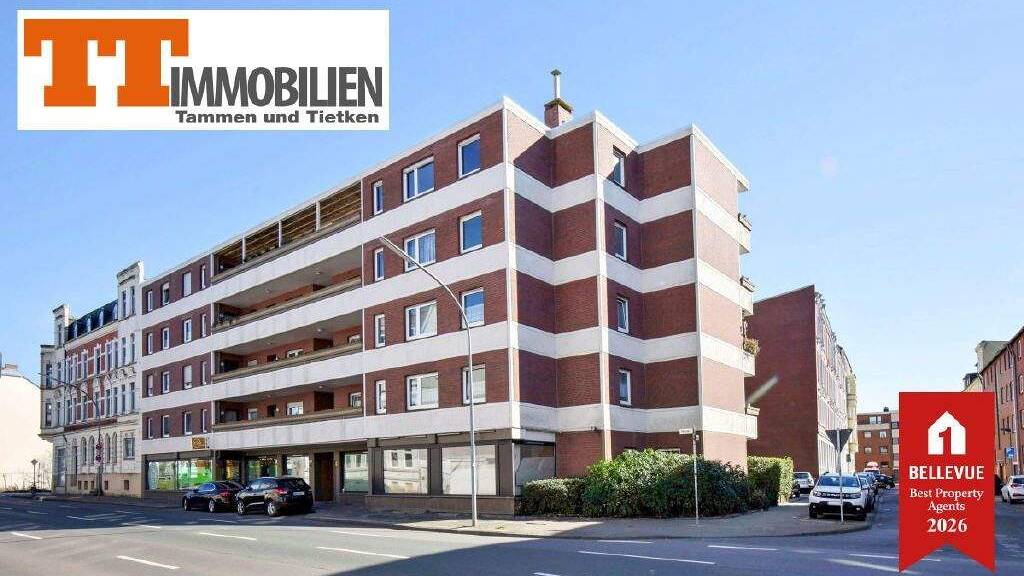 In urbaner Lage und dennoch angenehm gelegen, empfängt Sie diese großzügig geschnittene Wohnung im vierten Obergeschoss eines gepflegten Mehrparteienhauses aus dem Jahr 1982. Schon der Zugang über den Laubengang mit Blick über Wilhelmshaven macht Lust aufs Ankommen der Fahrstuhl bringt Sie dabei bequem in Ihr neues Domizil. Die rund 73 m² Wohnfläche überzeugen mit einem durchdachten Grundriss. Besonders der einladende große Flur, der sich über Eck erstreckt, vermittelt direkt ein Gefühl von viel Platz und Raum. Herzstück der Wohnung ist das lichtdurchflutete Wohnzimmer mit Zugang auf den sonnenverwöhnten Südbalkon. Hier lässt sich der Ausblick über die Dächer der Stadt genießen die Markise spendet dabei an heißen Tagen angenehmen Schatten. Die Küche ist mit einer Einbauküche ausgestattet, funktional durchdacht und durch einen kleinen Abstellschrank mit integrierter Heizungsanlage clever ergänzt. Das Fenster-Bad wirkt durch seine hellen Fliesen freundlich und modern und bietet Dusche, WC und praktische Badmöbel. Im Schlafzimmer findet sich genügend Raum zur individuellen Gestaltung ebenso wie im gesamten Wohnbereich der mit Laminatboden eine warme Atmosphäre schafft. Flur, Küche und Bad sind pflegeleicht gefliest. Ein Kellerraum sowie ein Garagenstellplatz direkt auf dem Grundstück runden dieses Angebot ab. Die monatlichen Hausgeldkosten liegen aktuell bei 218 Euro. Ob als Rückzugsort mitten im Geschehen oder als Investition in eine gefragte Lage diese Wohnung bietet viele Perspektiven.
