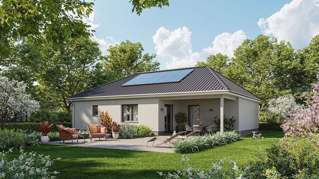 Seit über 90 Jahren bauen wir bereits Massivhäuser. Dieses Know-How und Können haben wir in unserer Aktionshausserie voll eingebracht. Der Unverbesserliche B960 bietet auf fast 125 m² Platz für die ganze Familie. Das Wohn- und Esszimmer bildet den Mittelpunkt des Hauses. Von dort gelangt man in alle weiteren Zimmer. Und Platz für ein Gästezimmer wurde auch noch geschaffen. Ein Highlight ist die überdachte Terrasse unter der man auch mal bei Regen sitzen kann. Die Unverbesserlichen erlauben jedem noch so kleinen Geldbeutel sich seinen Traum vom Eigenheim zu erfüllen.