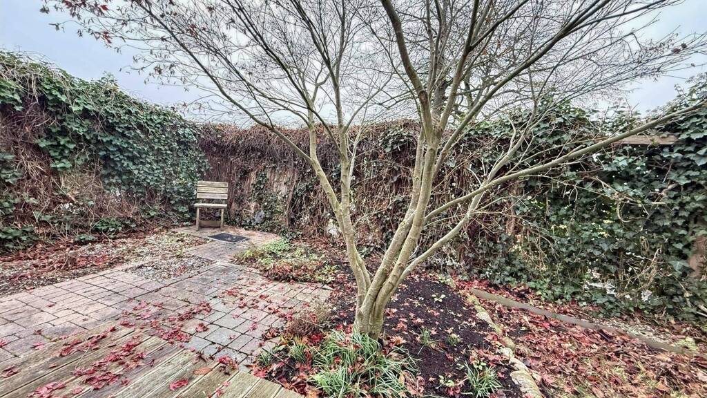 Der kleine, pflegeleichte Garten mit angrenzender Terrasse, die bereits mit einer Sitzgelegenheit ausgestattet ist, eignet sich für entspannte Stunden im Freien, gesellige Abende oder ein ruhiges Frühstück an warmen Tagen.