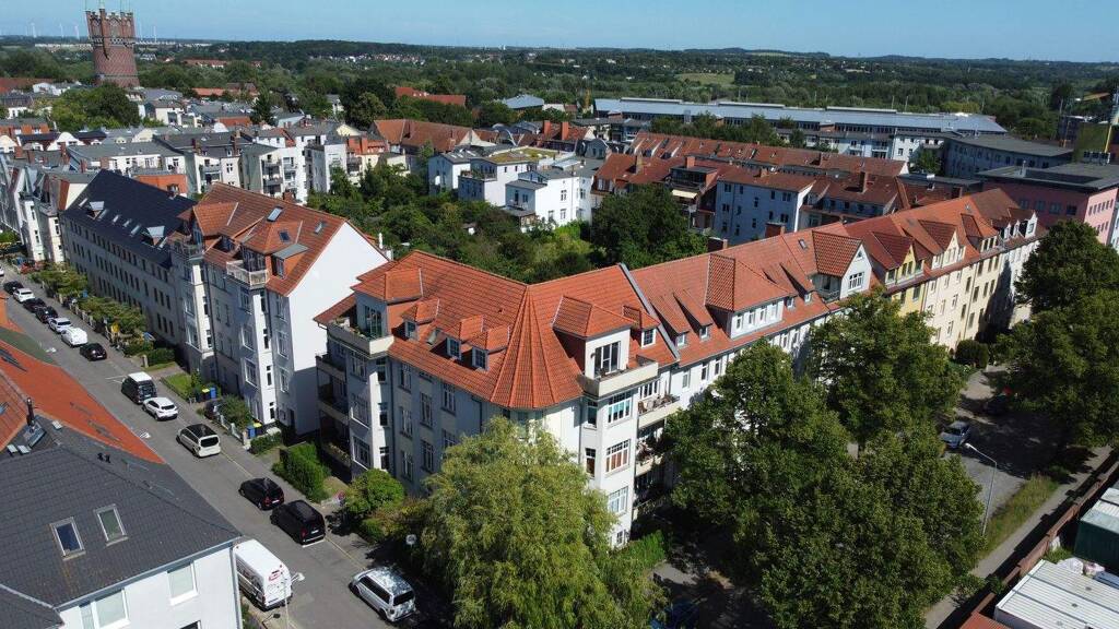 Die norddeutsche Hansestadt Rostock zieht sich etwa 20 km am Lauf der Warnow bis zur Ostsee entlang. Die Hansestadt hat heute etwa 210.000 Einwohner und ist nach Einwohnerzahl und Fläche die größte Stadt des Landes Mecklenburg-Vorpommern. Schifffahrt und Schiffbau, Fischfang und der Tourismus bestimmen das wirtschaftliche Profil der Stadt, welche sich immer stärker Technologie orientierten Industriezweigen öffnet. Stetige Unternehmensansiedlungen und -Erweiterungen haben die Attraktivität der Hansestadt in den letzten Jahren weiterhin gesteigert. Diese positive wirtschaftliche Entwicklung spiegelt sich in der gestiegenen Einwohner- und Studentenzahl wider. Durch die Universität Rostock mit ihrem breit gefächerten Angebot, das Fraunhofer- und Max-Planck-Institut sowie das Technologiezentrum ist die Hansestadt ein Standort mit Innovationspotenzial. Die Wohnung selbst befindet sich im Rostocker "Bahnhofsviertel", einer sehr beliebten und exklusiven Innenstadtlage welches ein von Villen und hochwertigen Mehrfamilienhäusern gezeichnetes Stadtviertel ist. Mit ruhigen Straßenzügen ist das Bahnhofsviertel auch für Familien ein attraktives Wohnviertel, welches unweit vom direkten Stadtzentrum liegt. Nicht nur durch die verkehrsgünstigen Anbindungen wie Bus, Straßen- und S-Bahn ist diese Wohngegend sehr begehrenswert. Sämtliche Infrastruktureinrichtungen sind in der Umgebung vorhanden. Wohneigentum im Bahnhofsviertel ist trotz der in den vergangenen Jahren solide gestiegenen Preise sehr attraktiv.