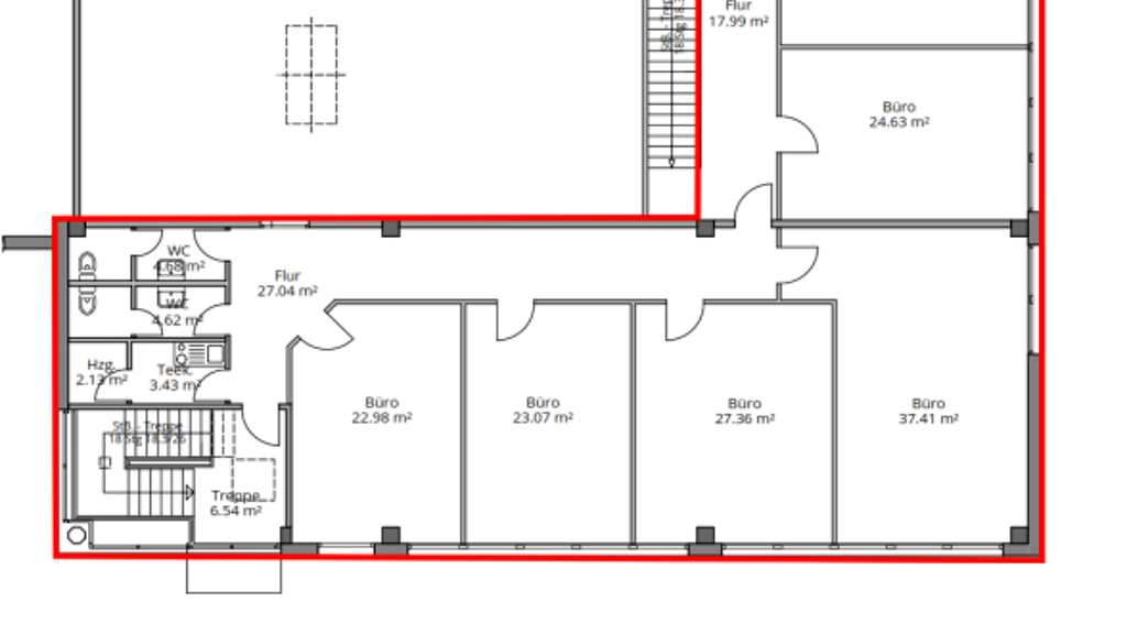 Angeboten werden nahe beieinander gelegene Büroimmobilien. Flexibel sind verschiedene Büroflächen auf mehreren Etagen anmietbar. Die Decken sind abgehängt und mit Leuchtkörpern integriert. Gute Datenleitungen, Sonnenblenden und Heizkörper vorhanden. Die Böden sind überwiegend mit Nadelfilz bestückt.