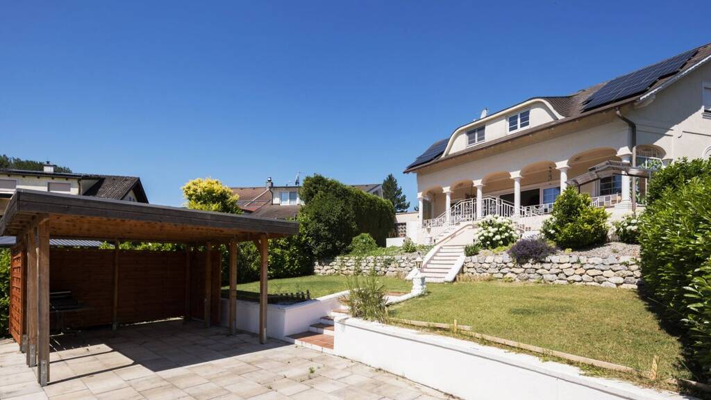 Das Haus befindet sich inmitten einer gepflegten Wohnanlage und befindet sich alleinstehend auf einer Doppelparzellenfläche. Die Wohnfläche von rund 269 m² verteilt sich großzügig auf zwei Ebenen und bietet viel Raum für Familie, Gäste und individuelle Gestaltungsideen.