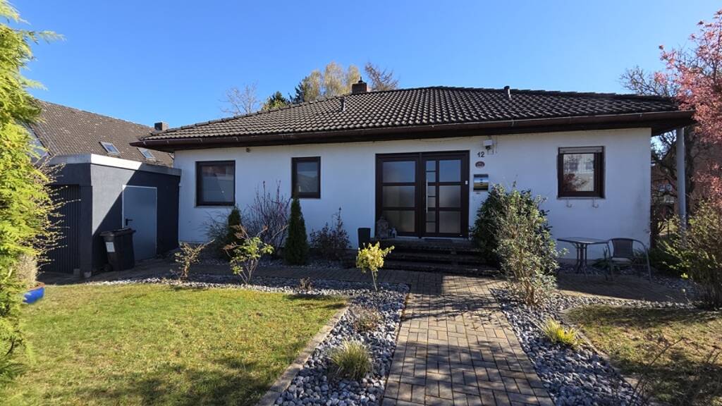 Dieser gepflegte Bungalow aus dem Jahr 1982 mit Vollkeller überzeugt durch eine durchdachte Raumaufteilung und ein vielseitiges Platzangebot. Eine im Jahr 1994 erweiterte Doppelgarage bietet heute komfortablen Stellraum für zwei Fahrzeuge sowie zusätzlichen Stauraum.