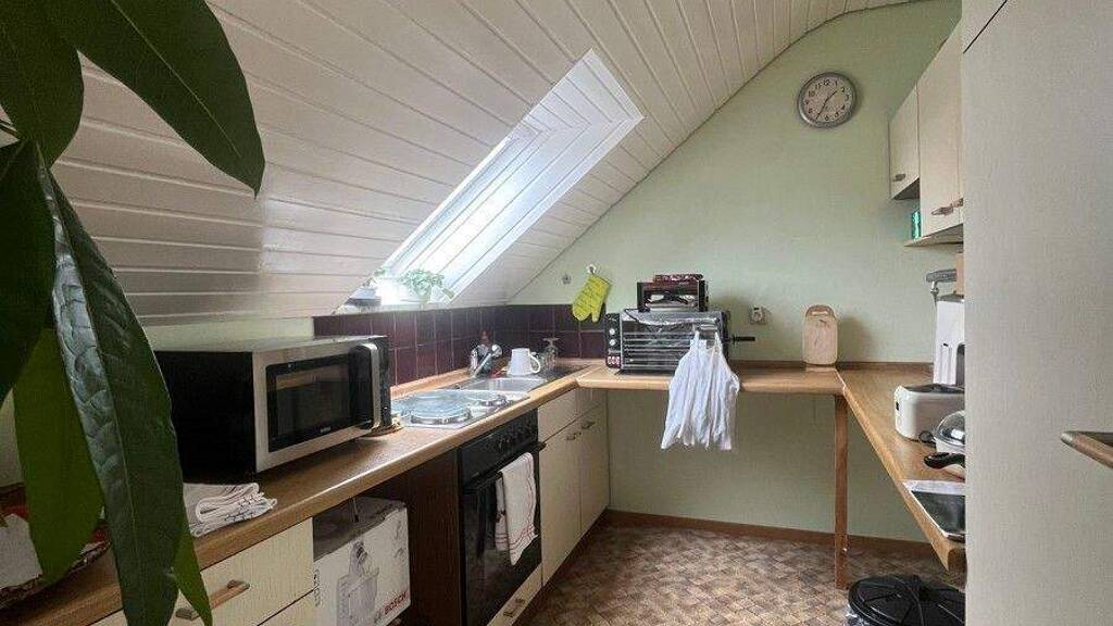 Das Obergeschoss ist als separate Wohnung konzipiert und verfügt über eine Küche sowie weitere Wohnräume. Die flexible Grundrissgestaltung ermöglicht es den Bewohnern, die Räume nach ihren individuellen Bedürfnissen anzupassen und zu verändern, sei es für zusätzlichen Wohnraum oder für Büro- und Arbeitsbereiche.