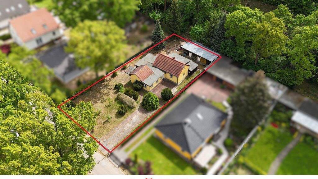 Das südöstlich ausgerichtete Grundstück ist 876 m² groß, verfügt über eine Straßenfront von ca. 20 m und eine mittlere Tiefe von ca. 43 m. Auf dem Grundstück befinden sich ein vermutlich, abrissbedürftiger Altbestand (6 Räume + Veranda, Küche und Bad) sowie ein im guten Zustand befindliches Schuppengebäude (hintere Grundstücksbereich), das zur weiteren Nutzung erhaltenswert ist.