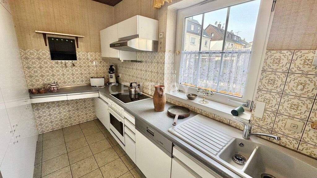 - ruhige Lage in Oestrich-Winkel; Sackgasse - gute Infrastruktur - durchdachter Grundriss - Baujahr 1972 - Grundstück 509 m² - 3,5 Zimmer, ca. 102 m² Wohnfläche - Böden: Fliesen, Parkett, Teppich - 1 Tageslichtbad im 1. Obergeschoss - Gäste-WC im Erdgeschoss - Einbauküche - Isolierglas-Fenster (2-fach) mit elektrischen Rollläden - Warmlufterzeuger mit Öl-Zerstäuber - neues Dach im Jahr 1997 - Keller: 1 Heizungsraum, 3 Kellerräume, 1 Hauswirtschaftsraum - 1 Doppelgarage - 1 Terrasse - großer Garten