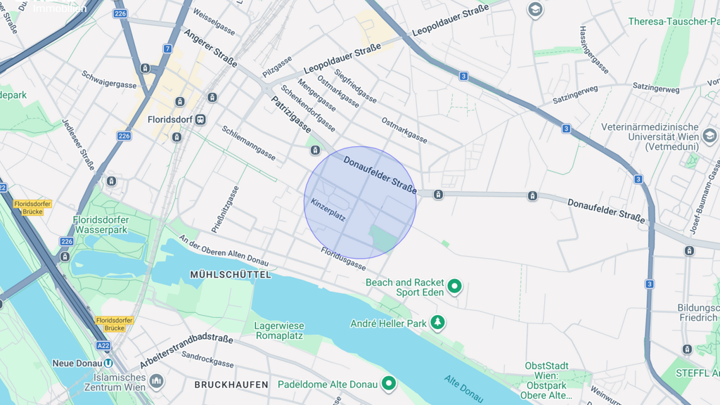 Das Freizeitparadies Alte Donau ist auch nur ca. 800 Meter entfernt.