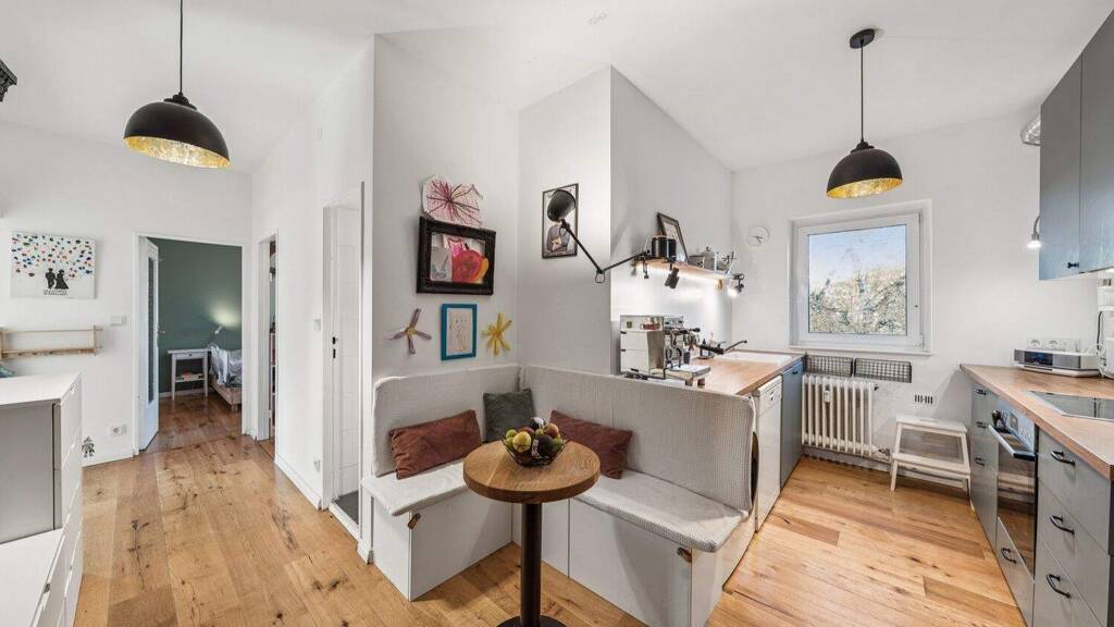 Hochwertiges Parkett in Wohn- und Schlafbereichen sorgt für eine warme Atmosphäre, während das Bad mit zeitlosen Fliesen ausgestattet ist. 3-fach verglaste Fenster schützen vor Lärm und sparen Energie, und die 2,70 m hohe Decke schafft ein besonders großzügiges Wohngefühl.