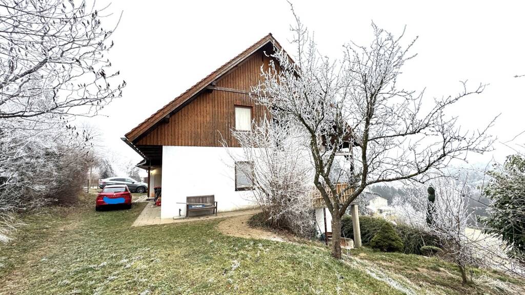 Dieses Einfamilienhaus wurde 1982 auf einem Grundstück von 993 m² errichtet. Das Haus wurde am höchsten Bergrücken gebaut. Somit haben Sie einen sensationellen Panoramablick ins Grüne, wie Wiesen, Wälder und in ländliche Gegend. Bei Errichtung wurde das Haus schon vorrausschauend mit 38 Ziegel gebaut. Es wurde so konzipiert, dass drei Familien Platz finden können. Fertigstellungsarbeiten wie Vollwärmeschutz und neue Fenster wären vorteilhaft. Das Dachgeschoß und der Keller sind noch im Rohbau. Das Objekt wird mit einer günstigen Pelletheizung und mit einem gemauerten Kachelofen beheizt. Leitungen wurden schon im Keller und im Dachgeschoß installiert. Die Austragung der Wärme wird auf Radiatoren übertragen. Die Garage, welche sich im Erdgeschoß befindet, bietet reichlich Platz für eine Werkstätte, oder für Motorräder. Diese wäre auch ideal für Schrauber, die selbst an ihrem Fahrzeug schrauben möchten. Der Keller ist unterteilt in 5 Räume: Heizraum, Pelletraum, Lager, Wirtschaftsraum, Waschraum, 2 Zimmer. Der Keller würde sich gut für einen Wellnessbereich eignen. Dieser ist auch vom Garten zugänglich