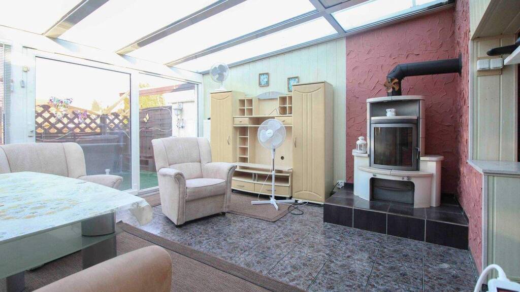 Dieses Haus bietet über 100?m² Wohnfläche und fünf gut geschnittene Zimmer, die einer Familie viel Platz und Flexibilität ermöglichen. Der helle Wintergarten erweitert den Wohnbereich und schafft zusätzlichen Raum für Freizeit oder entspannte Stunden. Ein Kamin sorgt hier zusätzlich für eine angenehme Atmosphäre.