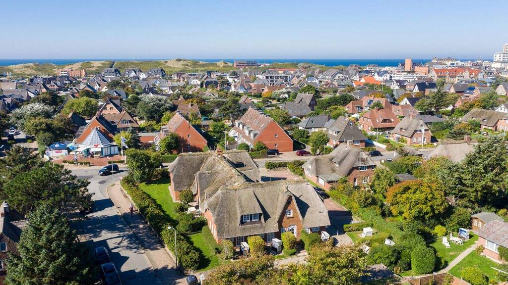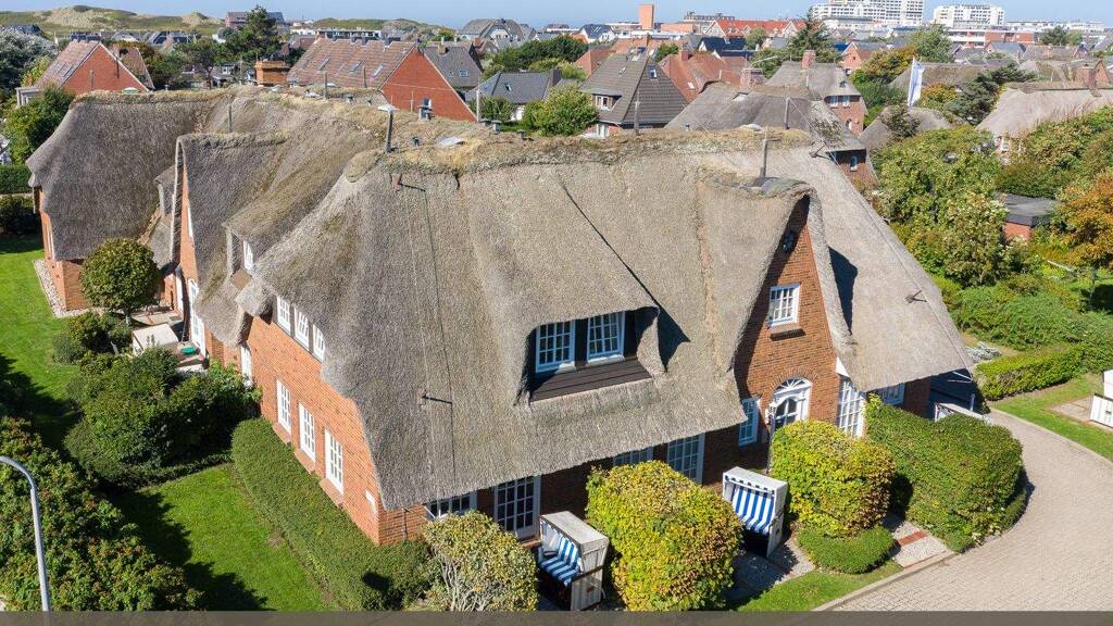 Die Obergeschosswohnung befindet sich in einem reetgedeckten Ensemble in Stadt- und strandnaher Lage von Westerland. Über den östlichen Eingang gelangen Sie in das Dachgeschoss in dem sich die bezaubernde Wohnung befindet.