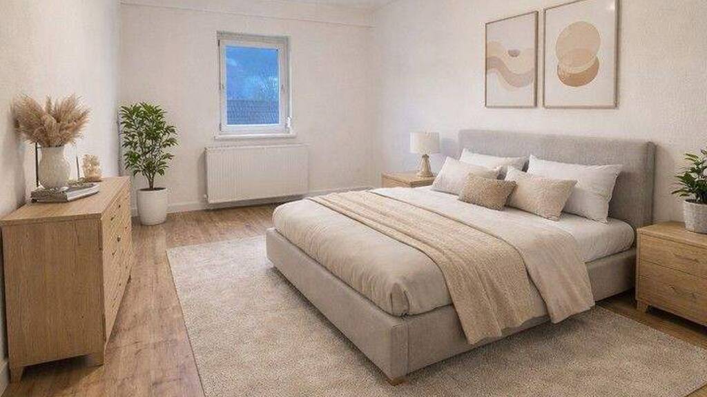 Der großzügige Eingangsbereich sorgt für ein entspanntes Ankommen und verbindet alle Räume auf kurzem Weg. Zwei Schlafzimmer und ein Wohnzimmer bieten flexible Nutzungsmöglichkeiten - ob als Schlaf-, Arbeits- oder Familienzimmer. Durch die großen Fenster wirken alle Räume hell und freundlich.