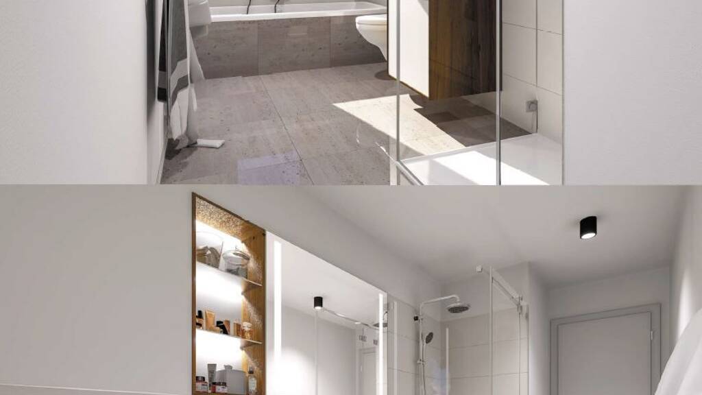 Das Obergeschoss ist ganz dem Rückzug und der Erholung gewidmet: Ein Elternschlafzimmer, zwei helle Kinderzimmer, ein Büro sowie ein geräumiges Bad bieten genügend Platz für die ganze Familie.