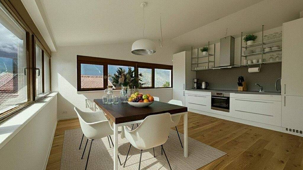 Im obersten Stock eines modernen Neubauprojekts in Stams erwartet Sie dieses außergewöhnliche 4-Zimmer-Penthouse mit ca. 100 m² Wohnfläche. Großzügige Fenster auf allen vier Seiten (Nord, Ost, Süd und West) schaffen eine helle, freundliche Wohnatmosphäre - kombiniert mit einem atemberaubenden Rundumblick auf die umliegende Natur und Bergwelt.