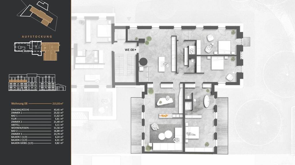 Das Ergebnis sind drei einmalige, luxuriöse Immobilien im KFW 55 und KFW 100 Standard mit Fernwärme.