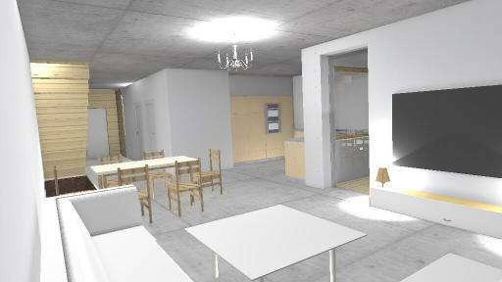 Der Eingangsbereich ist ein Highlight und ist der Umgebung angepasst. Der Flurbereich ist mit Licht und Schatten Effekt versehen.