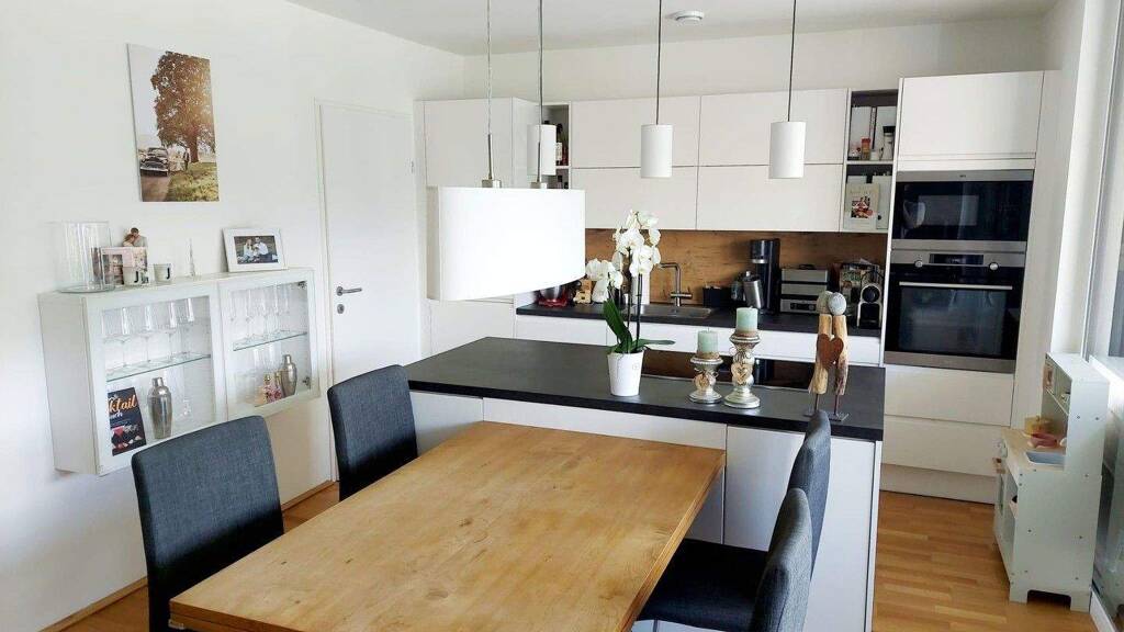 Willkommen in Ihrem neuen Zuhause! Diese moderne 3-Zimmer-Wohnung in einem erst im Dezember 2019 fertiggestellten Wohnhaus besticht durch ihr lichtdurchflutetes Design und hochwertige Ausstattung. Die Wohnanlage besteht aus 3 Gebäuden mit insgesamt 31 Wohnungen und einer Tiefgarage. Die zum Verkauf stehende Wohnung befindet sich im Haus B. Im Nachbargebäude A befindet sich ein Lebensmittelgeschäft im Erdgeschoss. Das Wohnungseigentum basiert auf einem 99-jährigen Baurecht an der Liegenschaft, das bis 2116 und damit noch über mehrere Generationen besteht. Daraus ergibt sich die großartige Möglichkeit, eine exklusive Wohnung mit toller Ausstattung in bester Lage zu einem wesentlich niedrigeren Preis als marktüblich zu erwerben. Die Wohnung befindet sich im 2. Stock und besticht durch eine moderne, offene Küche mit Kochinsel. Die Wohnung wird teilmöbliert übergeben. Die großzügigen Fensterflächen schaffen ein helles und freundliches Wohnklima und bieten einen wundervollen Ausblick vom Esstisch und vom Sofa aus auf die Berglandschaft. Die südwestlich ausgerichtete Loggia lädt zum Entspannen und zu geselligen Abenden ein und bietet ebenfalls einen wunderschönen Ausblick auf die Tiroler Berge. Die Loggia wurde mit Glas-Schiebeelementen ausgestattet, welche einen Aufenthalt im Freien im Sommer wie auch im Winter zulässt. Provisionsfrei - auch die Vertragserrichtungskosten werden vom Verkäufer getragen!