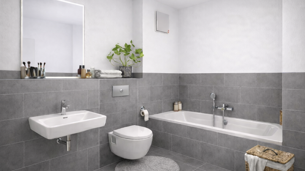 Das moderne Duschbad ist funktional und zeitgemäß geplant. Ergänzt wird das Raumangebot durch einen geräumigen Flur, der zusätzliche Stellfläche bietet.