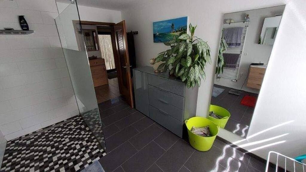 Im Inneren erwarten Sie helle und gut geschnittene Räume. Das Badezimmer wurde mit einer großzügigen, barrierefreien Dusche ausgestattet und sorgt für Komfort. Zusätzlich gibt es zwei separate WCs. Der Dachboden ist bereits gedämmt und ausgebaut, was zusätzliches Potenzial für eine Nutzung als Stauraum oder als weiteres Zimmer bietet.
