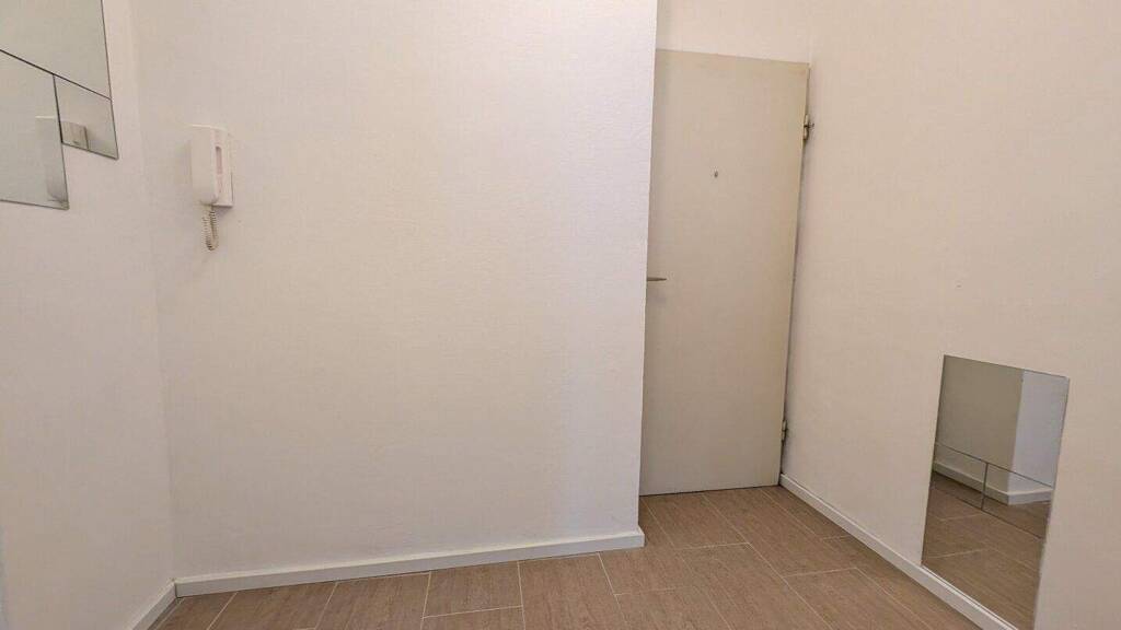 Vorzimmer: Die Wohnung wird durch eine klassische Eingangstür betreten und ist angenehm groß und bietet genug Platz für eine Garderobe und ein Schuhregal. Hier befindet sich ein sehr geschmackvoller Fliesenboden in Holzoptik.