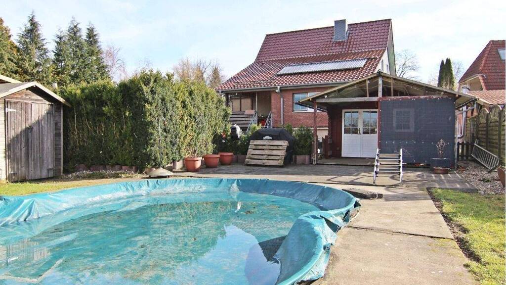 Das Haus ist vollständig unterkellert und verbindet moderne Ausstattung mit hohem Freizeitwert - inklusive Außenpool, Gartenhaus und drei Garagen.