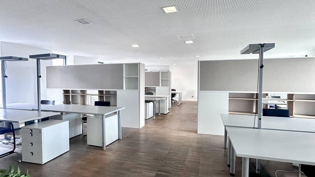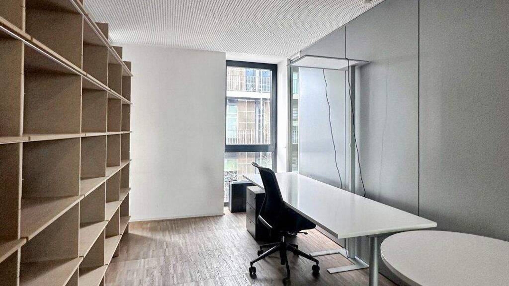 Die großzügigen Glasfronten sorgen für eine helle und freundliche Arbeitsatmosphäre. Auf Wunsch kann das bestehende Mobiliar übernommen werden, was eine ideale Gelegenheit für einen sofortigen und unkomplizierten Einzug bietet.