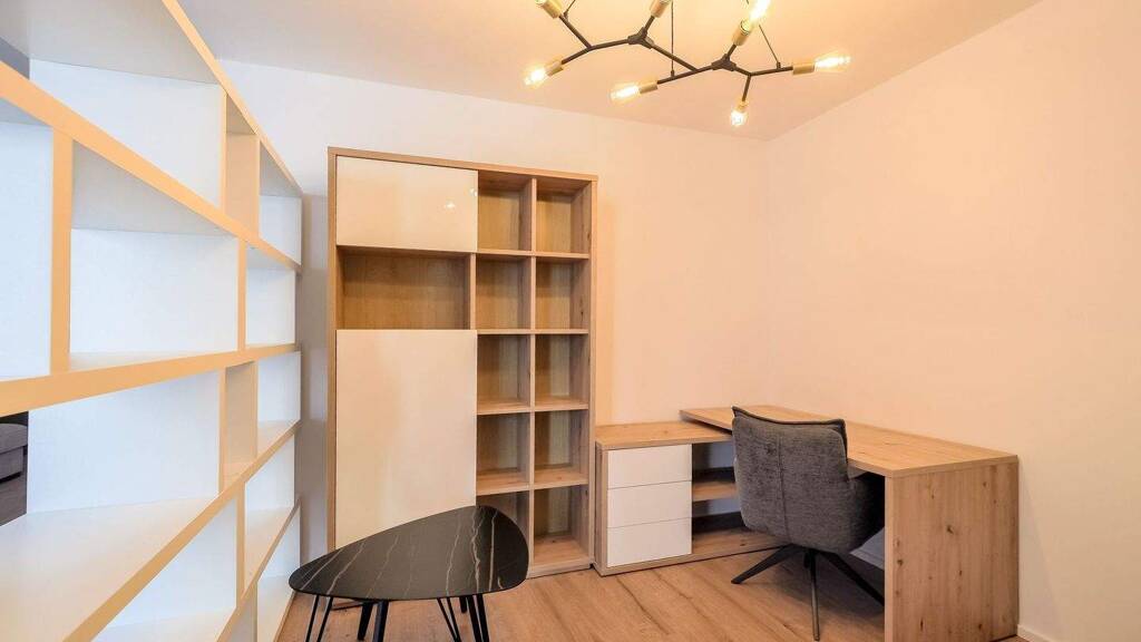 .Heller Wohn-/Essbereich mit Zugang zur Terrasse .Leicht separierter Arbeitsbereich .Offen konzipierte Küche mit Platz für Maßeinbauten .Großes Schlafzimmer mit weiterem Terrassenzugang .Geräumiges Badezimmer mit modernen Fliesenarbeiten, Badewanne und Dusche .Garderobe mit vielen Staumöglichkeiten .Praktische Abstellkammer .Ca. 12,76 m² große Terrasse