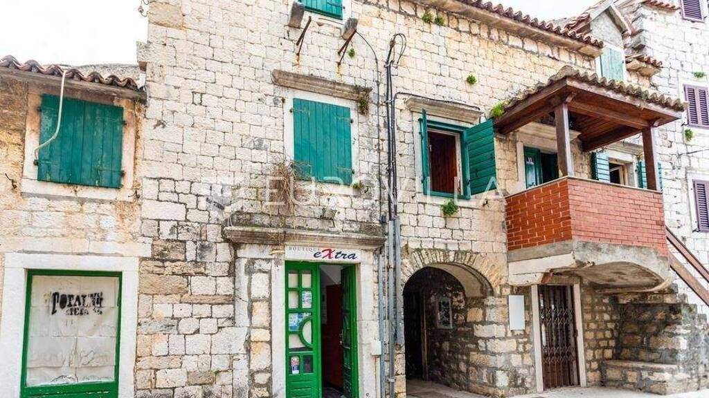 Kastel Stari - kamena kuca s poslovnim prostorom u samom centru mjesta, tridesetak metara od Rive.Kuca bruto povrsine 220 m2 sastoji se od poslovnog prostora u prizemlju te dvoetazne stambene jedinice. Poslovni prostor povrsine 49 m2 odvojen je od stambenog dijela I ima svoj zaseban ulaz kao I prikljucak vode I struje. Stambena jedinica na prvom katu sastoji se od kuhinje s blagovaonicom, tri odvojene prostorije te hodnika I kupaonice. Unutarnje stepeniste vodi u potkrovlje gdje s nalaze dvije spavace sobe, kupaonica, hodnik I terasa.Nekretnina iziskuje ulaganja, ali je I odlicna investicija s dodanom vrijednoscu poslovnog prostora na frekventnoj lokaciji te s potencijalom turistickog iznajmljivanja.Kastel Stari ima odlican pristup s magistrale iz smjera Splita i Trogira, kuca je od zracne luke Split udaljena 9 km.Vise informacija na upit.... Vise na eurovilla.hr, ID: 929206