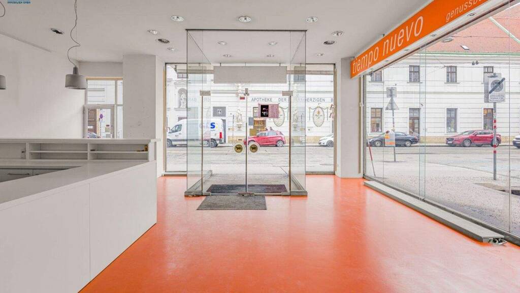 Das Lokal verfügt über eine sehr breite Glasfronten, hervorragende Sichtbarkeit und einen direkten Straßenzugang (barrierefrei).