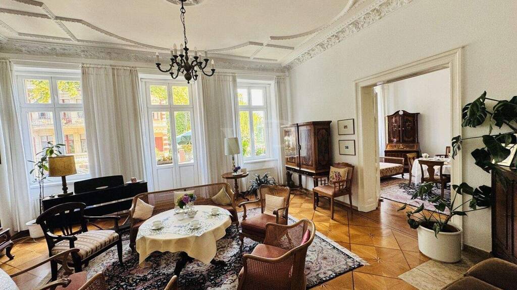 Zum Verkauf steht ein außergewöhnliches, denkmalgeschütztes Herrschaftshaus aus dem Jahr 1891, das sich durch seine eindrucksvolle Architektur und großzügige Wohnflächen auszeichnet. Das gepflegte Mehrfamilienhaus befindet sich auf einem rund 666 m² großen Grundstück und verfügt über eine Gesamtwohnfläche von ca. 765 m², verteilt auf fünf Wohneinheiten. Die kernsanierte Immobilie wurde zuletzt 2002 umfassend modernisiert, weitere Sanierungsarbeiten erfolgten in den Jahren 2005 und 2008. Der gepflegte Zustand und die gehobene Ausstattungsqualität schaffen ein anspruchsvolles Wohnumfeld.