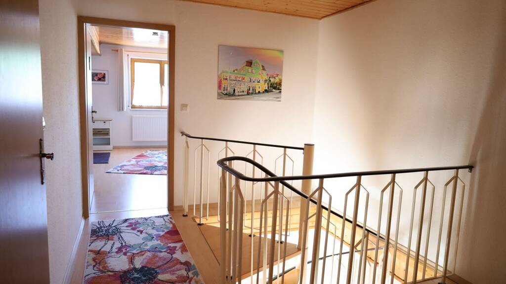 Vom Hauseingang geht es im Windfang eine Treppe nach oben und schon steht vor der eigenen Wohnungstüre. Im Eingangsbereich hat man Platz für die Garderobe und vom hellen Flur mit Wendeltreppe erreicht man alle Räume.