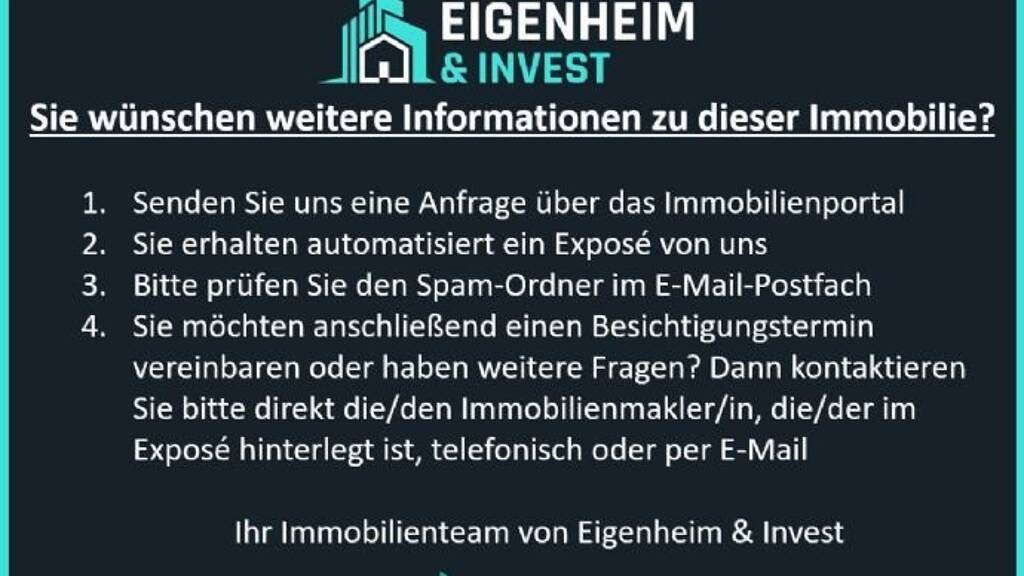 Für Immobilieneingentümer: Sie möchten Ihre Immobilien verkaufen oder eine kostenlose Wertermittlung von einem Profi erhalten? Dann kontaktieren Sie uns direkt unter info@eigenheim-invest.de oder rufen Sie uns direkt an unter der +49 152 016 453 86 und vereinbaren Sie noch heute einen persönlichen Beratungstermin. Dieser Service ist für Sie völlig kostenfrei!