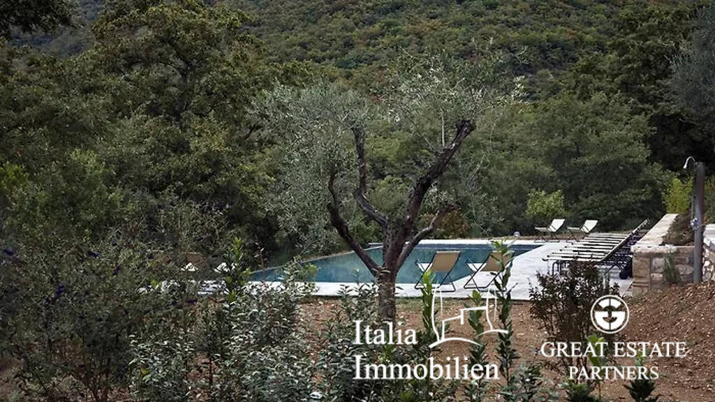 Umbria Resort Retreat liegt an einem traumhaften Ort, an dem die Zeit langsamer zu vergehen scheint. Eine üppige mediterrane Macchia umrahmt dieses herrliche Resort mit 14 Zimmern, ein Haus für den Eigentümer und einen Bereich für Freizeit und Geselligkeit. Große Räume und großzügige Fenster sind das Markenzeichen dieses eleganten Anwesens. Das Ganze ist umgeben von einem 1,5 Hektar großen Grundstück mit einem herrlichen Swimmingpool.