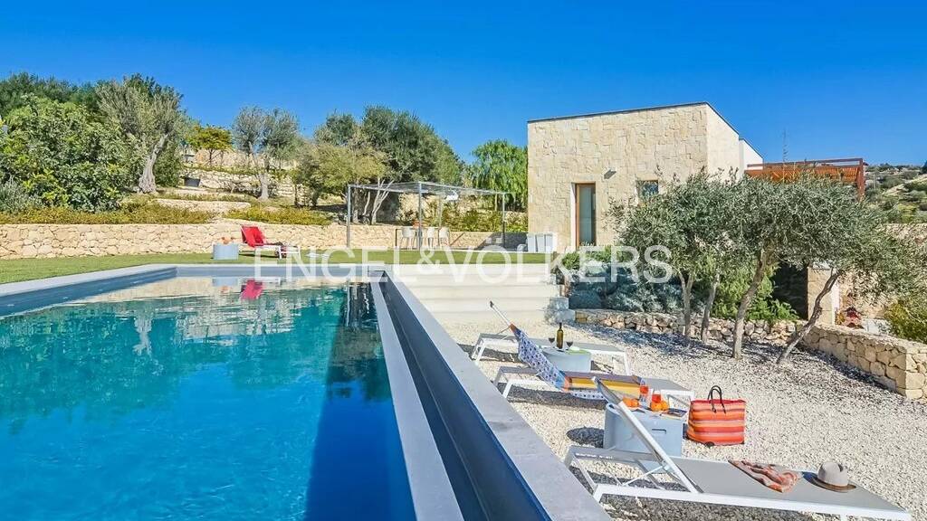 Diese außergewöhnliche Villa befindet sich in einer Umgebung von natürlicher Schönheit und Tradition, umgeben von eleganten Trockenmauern. Sie wurde mit viel Liebe zum Detail gebaut. Die Villa mit einer Fläche von ca. 240 Quadratmetern ist auf zwei Ebenen verteilt und bietet einen atemberaubenden Panoramablick auf die umliegende Landschaft. Ein gemütlicher Wohnbereich mit Glasschiebefenstern im Obergeschoss schafft eine perfekte Verschmelzung von Innen und Außen und verbindet den Wohnraum mit einer wunderschönen Veranda, die einen unvergleichlichen Ausblick bietet. Der Wohnbereich geht harmonisch in die Küche über und schafft eine gesellige Umgebung, die zum Entspannen und Unterhalten einlädt. Ein Gästebad befindet sich ebenfalls auf dieser Ebene. Eine Innentreppe führt in die untere Etage, wo sich zwei geräumige Doppelschlafzimmer befinden, die jeweils über ein eigenes Bad verfügen. Ein geräumiges Einzelzimmer mit eigenem Bad gehört ebenfalls zu dieser Etage. Alle Zimmer haben unabhängige Eingänge von außen, mit großen privaten Außenbereichen, ideal zum Entspannen in absoluter Privatsphäre. Die Villa liegt eingebettet in ca. 6.000 Quadratmeter üppiges Grün und verfügt über einen herrlichen Salzwasser-Infinity-Pool mit einem Entspannungsbereich, der perfekt ist, um die sonnigen Tage auf Sizilien zu genießen. Eine große Außenveranda mit Grillplatz macht die Villa ideal für gesellige Momente im Freien. Das Anwesen ist mit Sonnenkollektoren, einem Bohrloch und einem großen Technikraum mit Waschküche ausgestattet, was seine Effizienz und Zweckmäßigkeit unterstreicht. Die Villa wird derzeit als Einkommensobjekt genutzt und stellt somit eine ideale Lösung sowohl für diejenigen dar, die einen exklusiven Wohnsitz wünschen, als auch für diejenigen, die nach einer erfolgreichen Immobilieninvestition suchen.