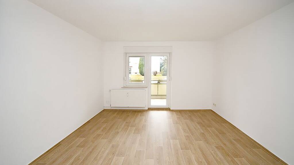 Ein echtes Highlight ist das lichtdurchflutete Wohnzimmer mit direktem Zugang zum Balkon – perfekt, um den Blick ins Grüne zu genießen und den Alltag hinter sich zu lassen. Auch das Schlafzimmer überzeugt durch viel Tageslicht und eine angenehme Wohnqualität.