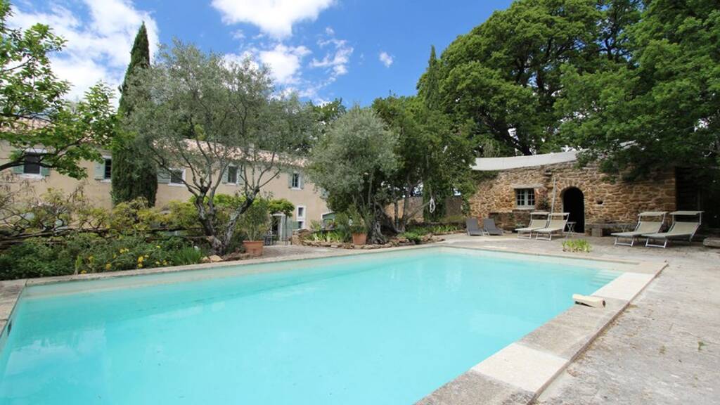 In a peaceful environment the whole of 2.4 hectares is decorated with a swimming pool and a magnificent park composed of local species with stone walls and Roman remains looking at Mont Ventoux. The rest of the land is made up of olive trees and orchards.