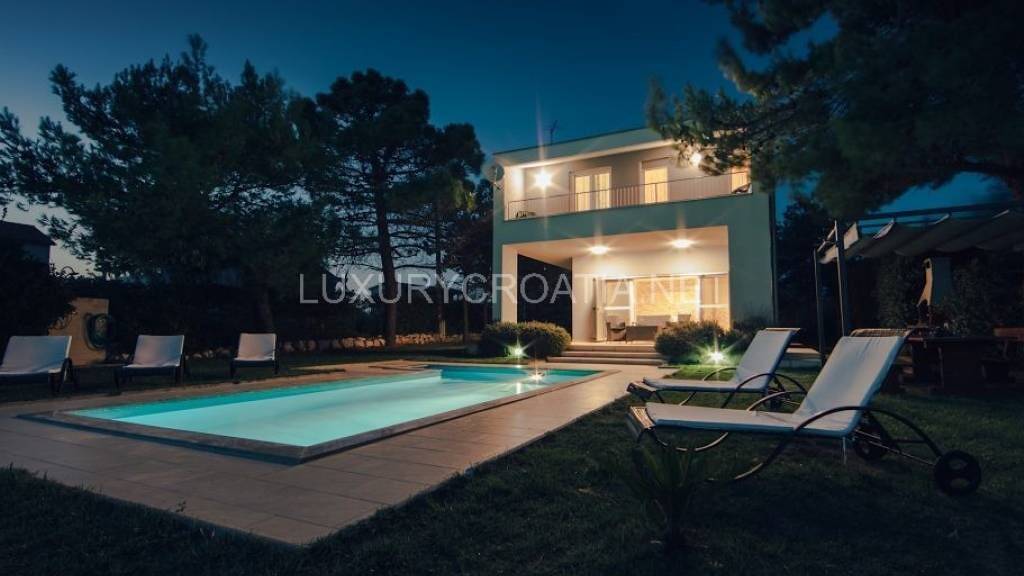 Hier steht eine moderne Strandvilla mit Pool in der Region Zadar Nin in Kroatien zum Verkauf, die nur etwa 150 Meter vom wunderschönen Sandstrand entfernt ist!