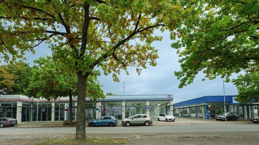Das Anwesen befindet sich im Erbpachtbesitz der Grundstücksgesellschaft des Autohausgesellschafters, wobei der aktuelle Erbpachtvertrag bis März 2041 läuft. Der jährliche Erbpachtzins beträgt derzeit 1,75 € pro m². Die bebaute Fläche beläuft sich auf etwa 2.000 m², davon entfallen ca. 700 m² auf großzügig verglaste Ausstellungsflächen, die sich über beide Hallen verteilen. Die Hallen sind flexibel nutzbar und eignen sich sowohl für Fahrzeugpräsentationen als auch für andere gewerbliche Zwecke.