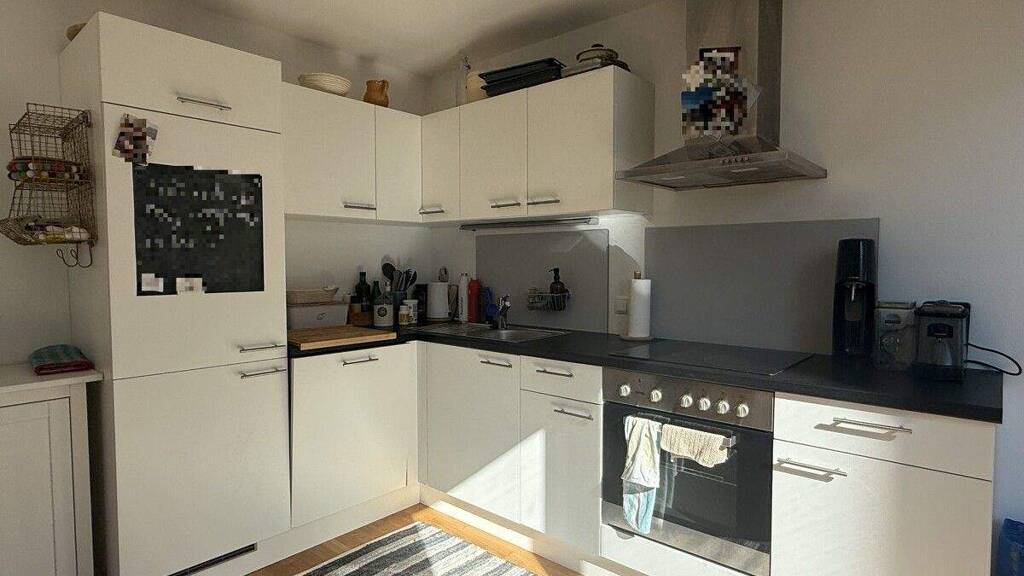 Die Wohnung verfügt über zwei Schlafzimmer, ein Badezimmer sowie einen offen und funktional gestalteten Wohnbereich mit hochwertiger Einbauküche. Fliesen- und Parkettböden sorgen für eine ansprechende Kombination aus Komfort und pflegeleichter Alltagstauglichkeit.