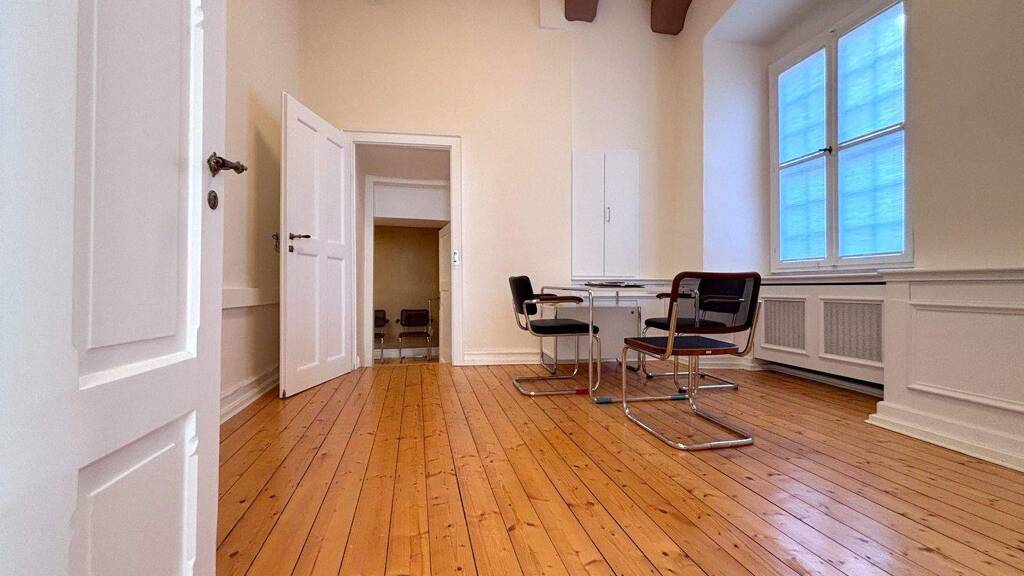 Die Gewerbeeinheit vereint den Charme vergangener Epochen mit modernem Komfort und eignet sich ideal für eine Nutzung als Büro oder Praxis. Sie befindet sich im Erdgeschoss und bietet dank ihrer hohen Decken und der harmonischen Raumaufteilung eine angenehme Arbeitsatmosphäre.