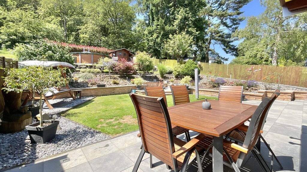 Besonders hervorzuheben ist die sehr gepflegte und hochwertig angelegte Gartenfläche, die sowohl für entspannende Stunden im Freien als auch für gesellige Zusammenkünfte perfekt geeignet ist. Ein Gartenhaus bietet Platz für Gartengeräte und der Pool lädt an heißen Tagen zur Erfrischung ein. Diese Oase des Wohlfühlens verspricht unvergessliche Momente im Kreise von Familie und Freunden.