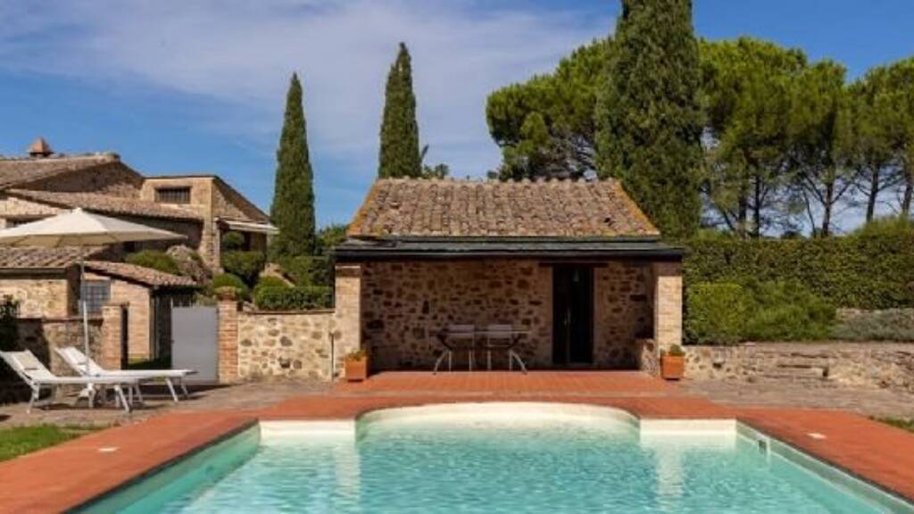 Charmantes und charakteristisches Bauernhaus aus Stein in den sanften Hügeln der sienesischen Landschaft in der Nähe von Radicondoli und umgeben von unberührter Natur mit eindrucksvollen Ausblicken.