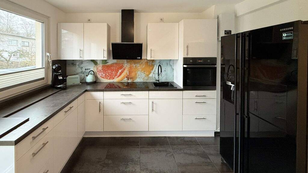 Freuen Sie sich auf ein exklusives Designbad mit Walk-in-Dusche, einer hochwertigen Einbauküche und weiteren Highlights.